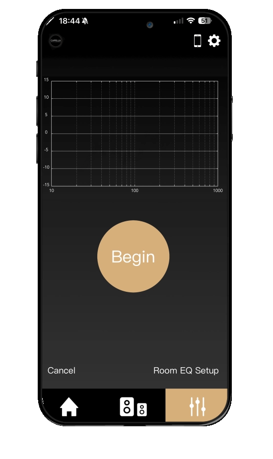 The MANUAL EQ feature allows you to precisely adjust the speaker response curve to match the acoustics of the room and the desired sound signature.