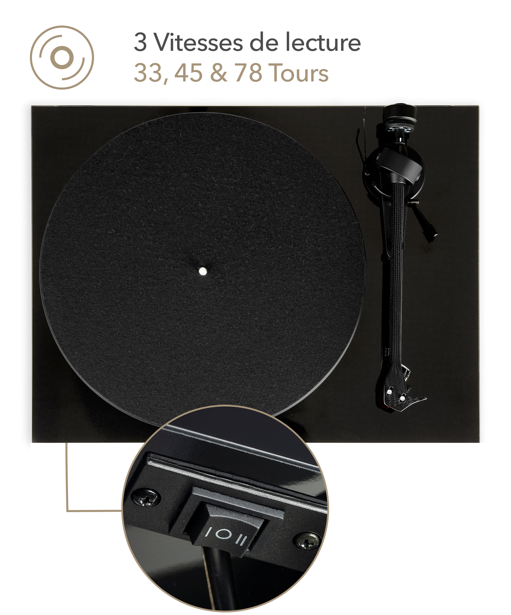 The LUNAR 3 turntable is compatible with all types of vinyl records on the market, being 33, 45 or 78 rpm.